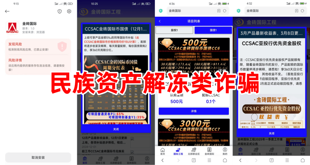 该项目冒充某部门的名义,制造散布涉诈APP,虚构推广“CCSAC亚投行优先资金股权”“国际币国债”等高额返利项目。