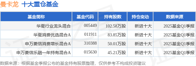 6月4日曼卡龙涨1701%华夏行业龙头混合基金重仓该