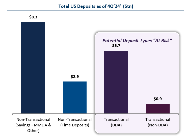 美银证券在5月27日的研报中指出,稳定币的高效支付功能及DeFi的信贷服务能力,可能导致6.6万亿美元存款流出传统银行体系,削弱其吸储和信贷能力,对中小银行冲击尤甚。