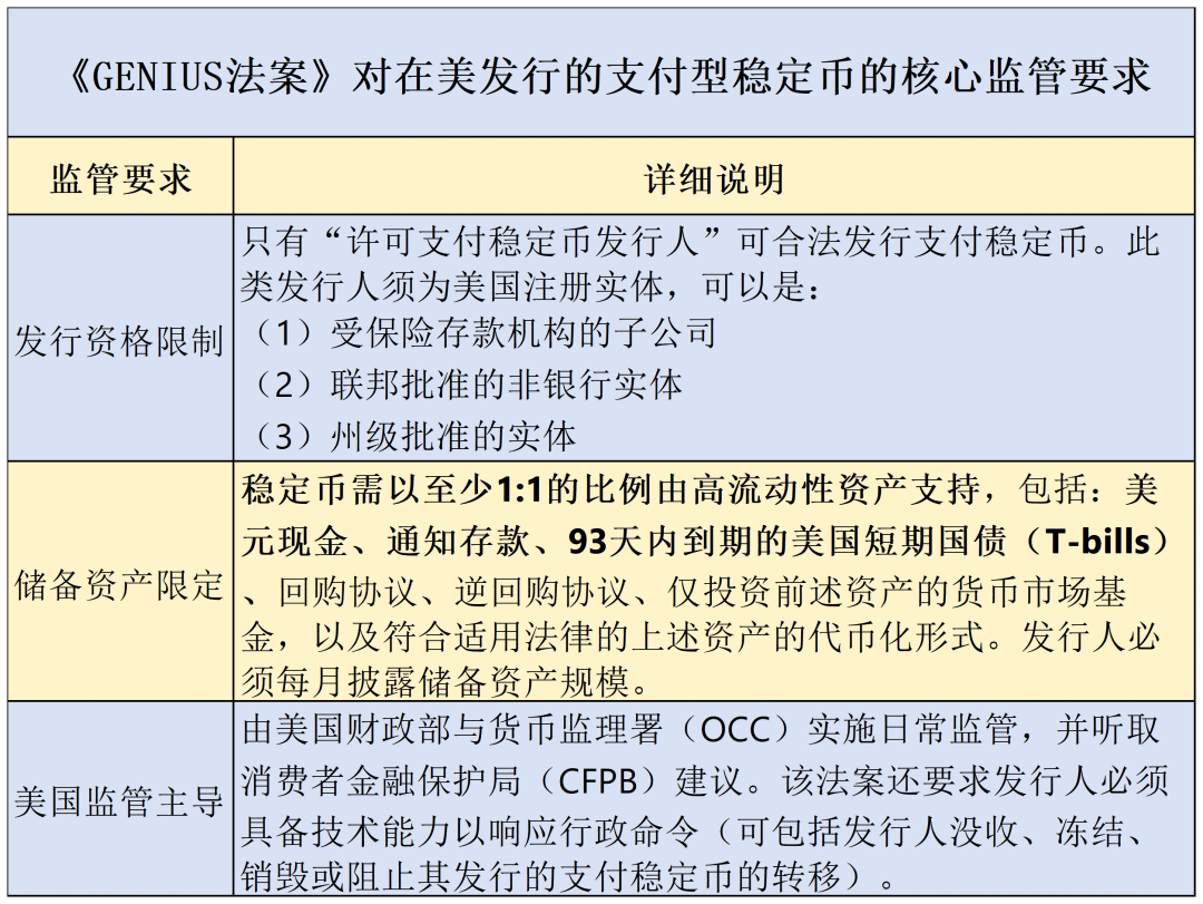 美国政府对稳定币的推动,其背后战略意图深远,远不止于金融创新本身。《GENIUS法案》的核心条款之一,即对稳定币储备资产的严格限定——必须以至少1:1的比例由美元现金、通知存款及93天内到期的美国短期国债等高流动性资产支持——已清晰勾勒出美国的双重战略目标。