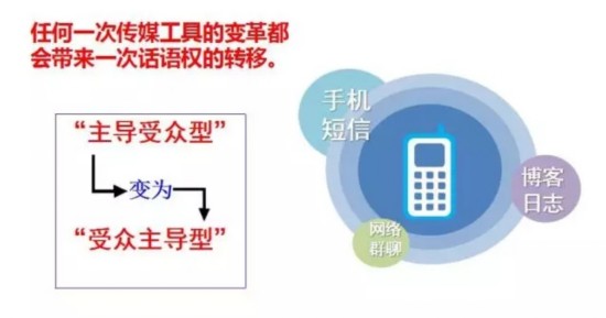 互联网是一个网状结构,没有中心节点,虽然不同的点有不同的权重,但没有一个点是绝对的中枢,可以纲举目张。而传统的中心化是一种层级式组织结构,它是可以牵一发而动全身的。因此,互联网的技术结构决定了它内在本质是去中心化,即对话语权进行解构,对媒体资源生态进行重新洗牌,表现在新媒体上,新闻面前人人平等 ,州官可以放火,百姓也可以点灯。这里的平等指传播和接受的平等。任何一次传媒工具的变革都会带来一次话语权的转移。在数字化和互联网的技术驱动下,传统媒体的“主导受众型”就变成了新媒体的“受众主导型”。如今,一个人通过发送手机短信、撰写博客日志、发起网络群聊,就可以在“任何时候、任何地点,对任何人”进行传播,这就突破了传统主流媒体的话语权壁垒。比如在各大网站,你在网上发布,我也可以在网上发布;你说东,我可以说西;你说的我不同意,我可能要吐槽,喷你几句。特别是自媒体、社交媒体,更是你说你的,我说我的,众说纷纭,莫衷一是。毛主席当年倡导的百花齐放、百家争鸣,在他老人家的治下没有做到的,新媒体时代的网民做到了。换句话说,政治没有做到的事情,技术轻而易举就做到了(恩格斯:一旦技术上的进步可以用于军事目的并且已经用于军事目的,它们便立刻几乎强制地而且往往是违反指挥官的意志而引起作战方式的改变甚至变革)。