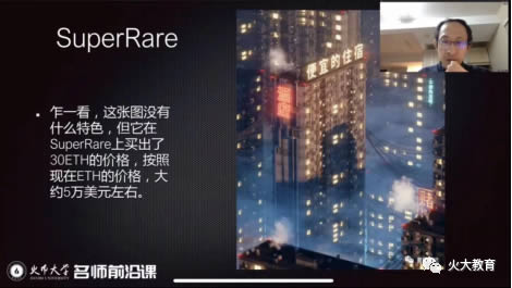 右侧图NFT的图片看上去没有什么特色,但是它在Super Rare上卖出了30ETH的价格,按照今天ETH的价格计算,接近5万美元的价值。Super Rare是目前比较有名的NFT艺术收藏品发行平台,但这个平台和其它的平台不一样,有些平台是无需许可的,任何人都可以成为创作人,比如我自己画了一幅画,上传并发行了NFT。但我在Super Rare有白名单制度,需要审核创作者的作品是否达到标准,只允许白名单的创作者能够进行关于NFT的创作,这可以保证上面艺术收藏品的价值较高。