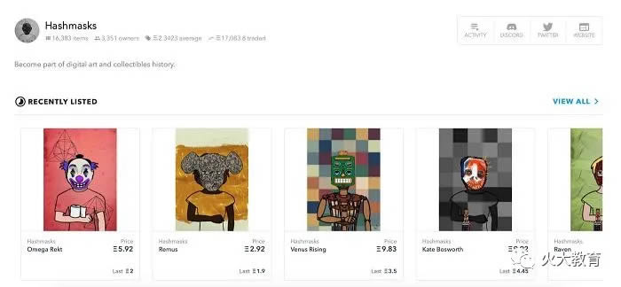 Hashmask是数字肖像收藏,是基于以太坊和IPFS的加密产品。数字肖像是限量供应,一共有16384个,由全球70多位艺术家创作。