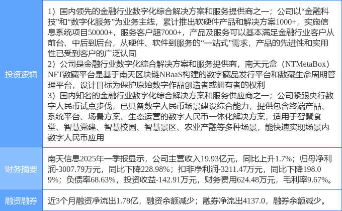 6月11日南天信息涨停:NFT数字人民币金融科技概