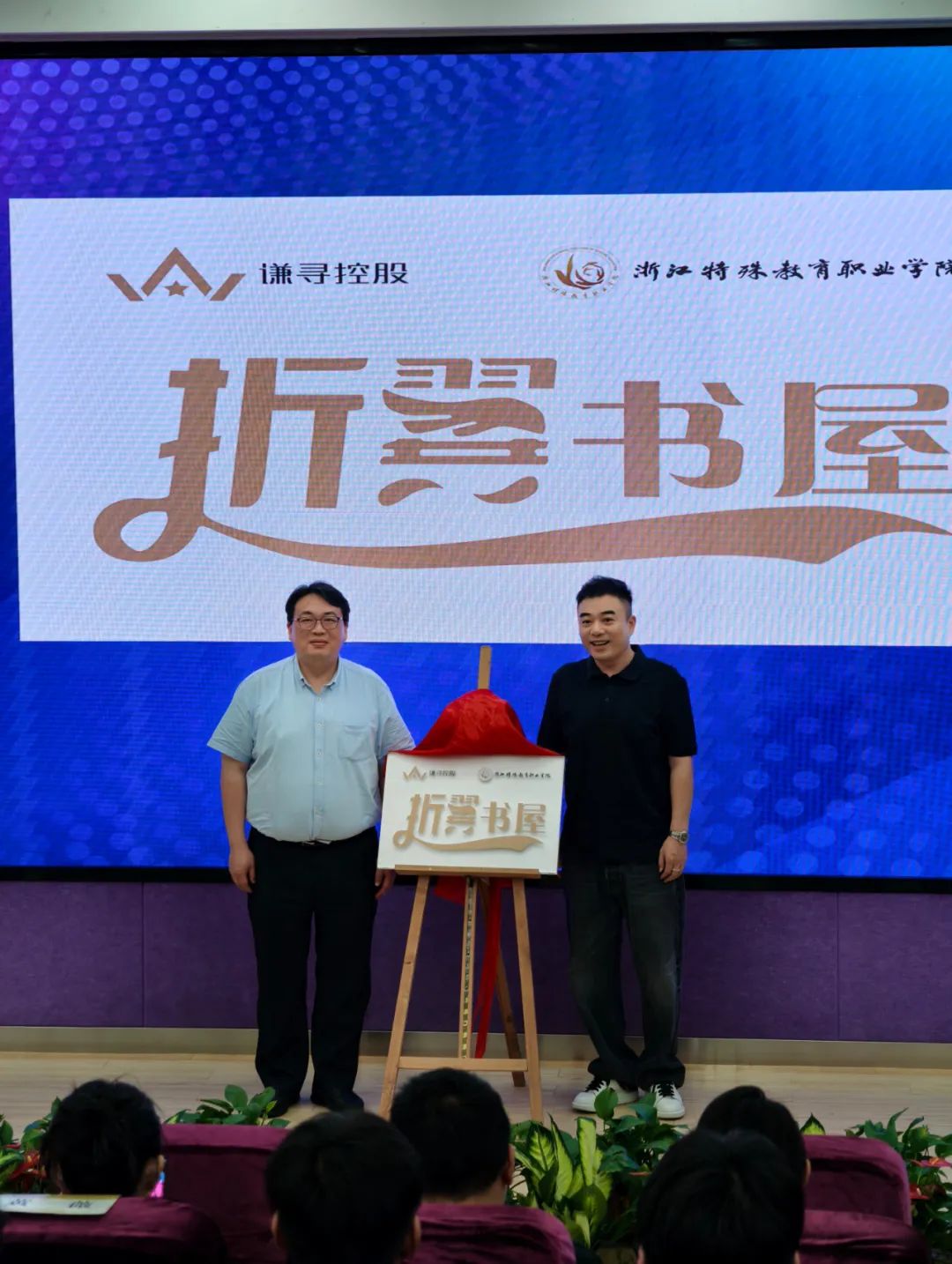 今年5月,为迎接第三十五次全国助残日的到来,谦寻控股董事长董海锋、联合创始人薇娅受邀前往浙江特殊教育职业学院举办“产教融合推进科技助残”活动,为“产业研基地”“折翼书屋”等校企合作项目揭牌。