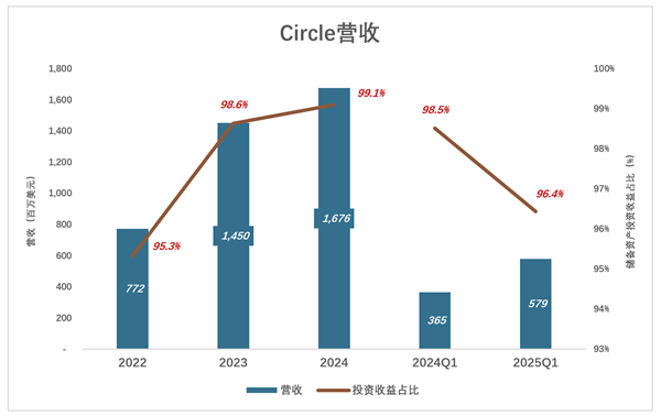 Circle九成以上收入来自储备资产的投资收益,主要是美国短期国债利息。