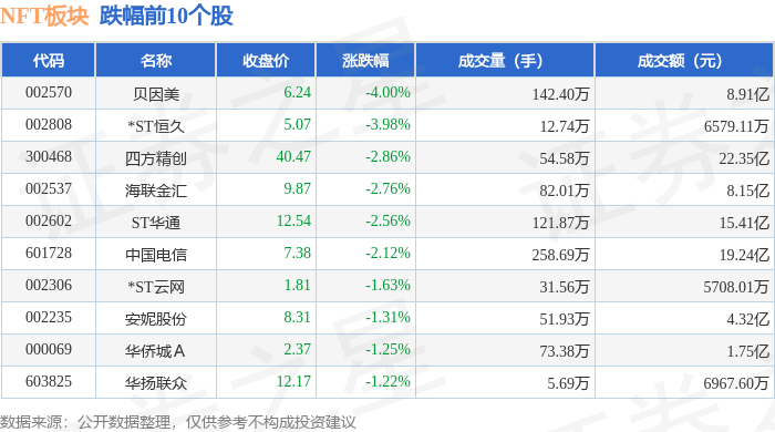 NFT板块7月25日跌07%贝因美领跌主力资金净流入3