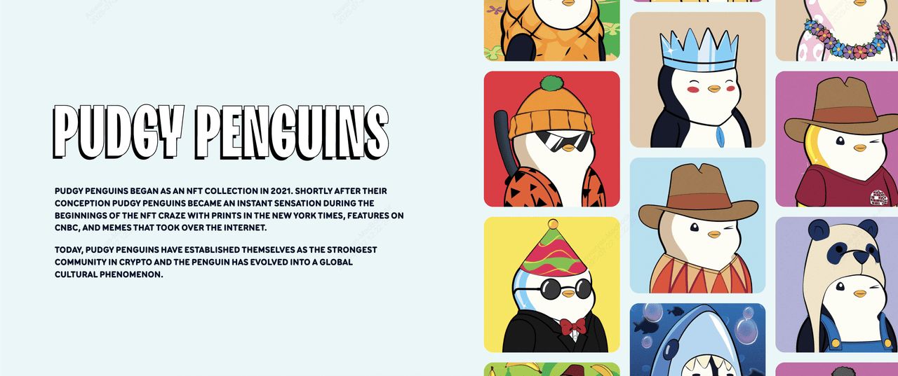 2021年7月推出的Pudgy Penguins迅速成为以太坊上最受喜爱的NFT收藏之一,拥有8,888个可爱的企鹅头像,象征着正能量、社群和创意。多年间,该项目从一个简单的NFT系列发展成为一个全球品牌,推出了玩具、商品和病毒式社交媒体内容。其专注于透过“Pengu Lore”(企鹅故事)和一个名为The Huddle的包容性社群,帮助Pudgy Penguins在拥挤的NFT空间中脱颖而出。透过Lil Pudgys等计划和Web3以外的合作,该品牌成功将数字收藏品与主流消费文化结合。